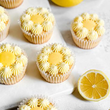 A light and fluffy lemon cupcake infused with fresh lemon juice and topped with a zesty lemon buttercream frosting, garnished with a sprinkle of lemon zest.